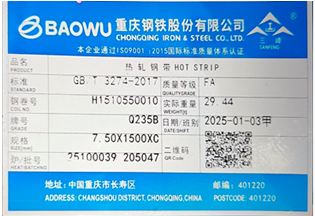 - 产品标牌:执行标准:GB/T3274-2017